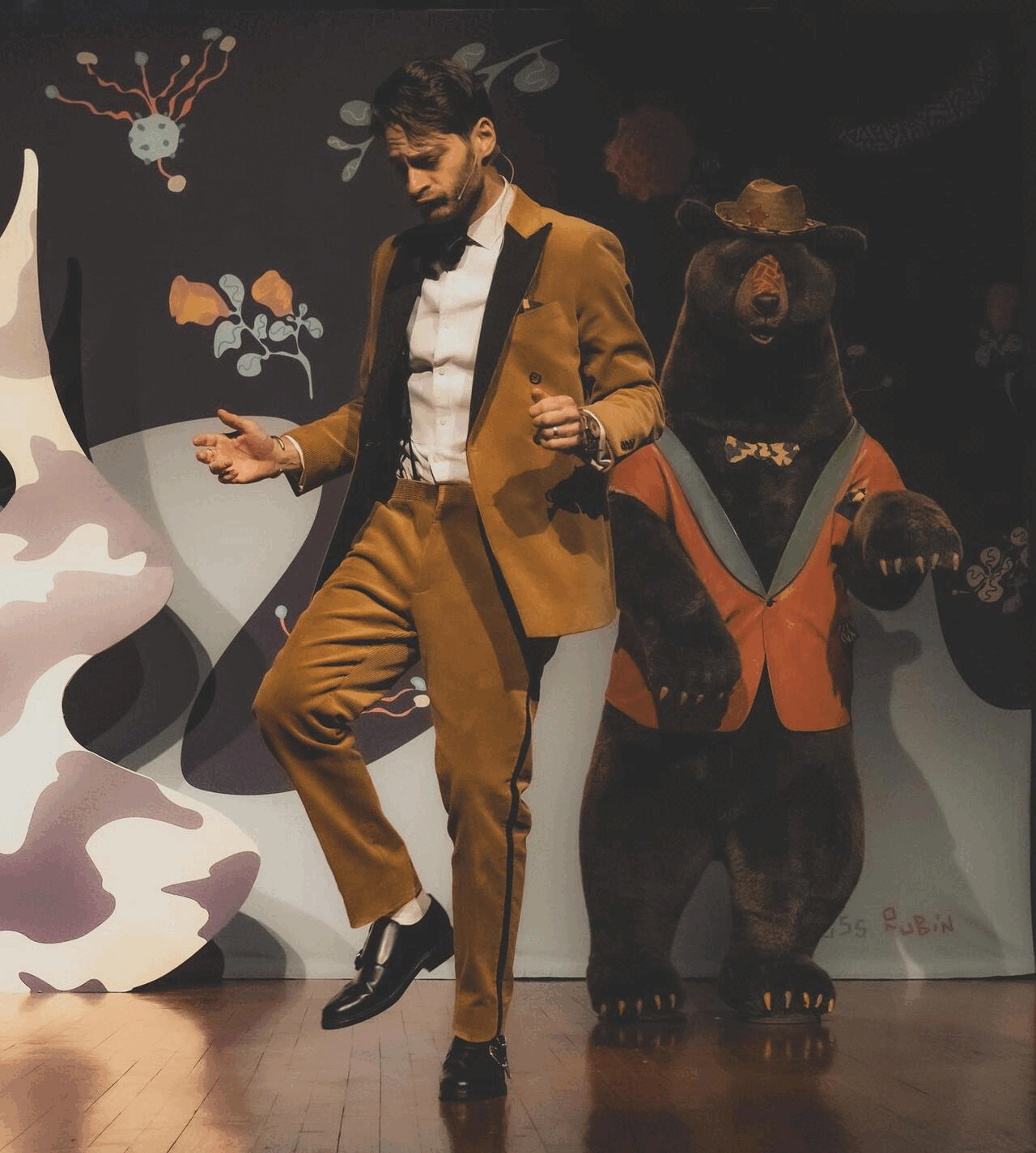 ...is about overcoming the shame of being an artist with absurdity and aplomb. in a strange way it’s a window onto the creative process itself, the spontaneous trying and failing and trying again that constitutes my artistic practice, live, in my first stage performance since acne.