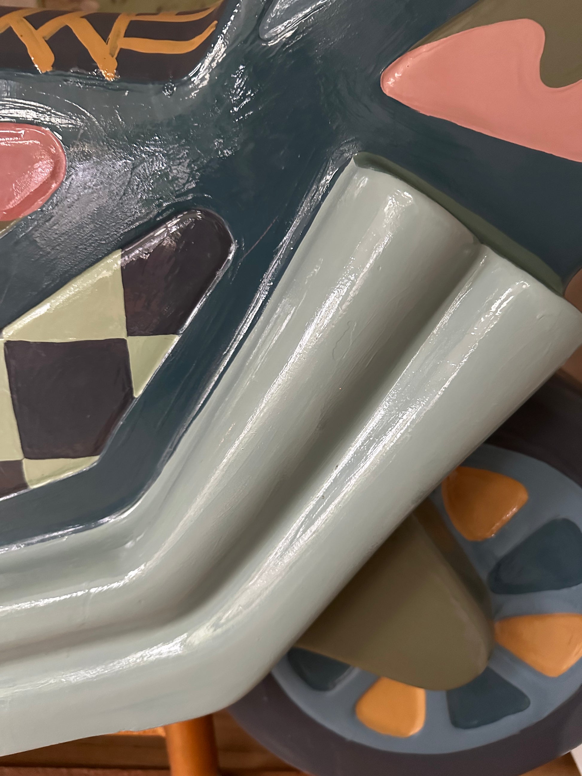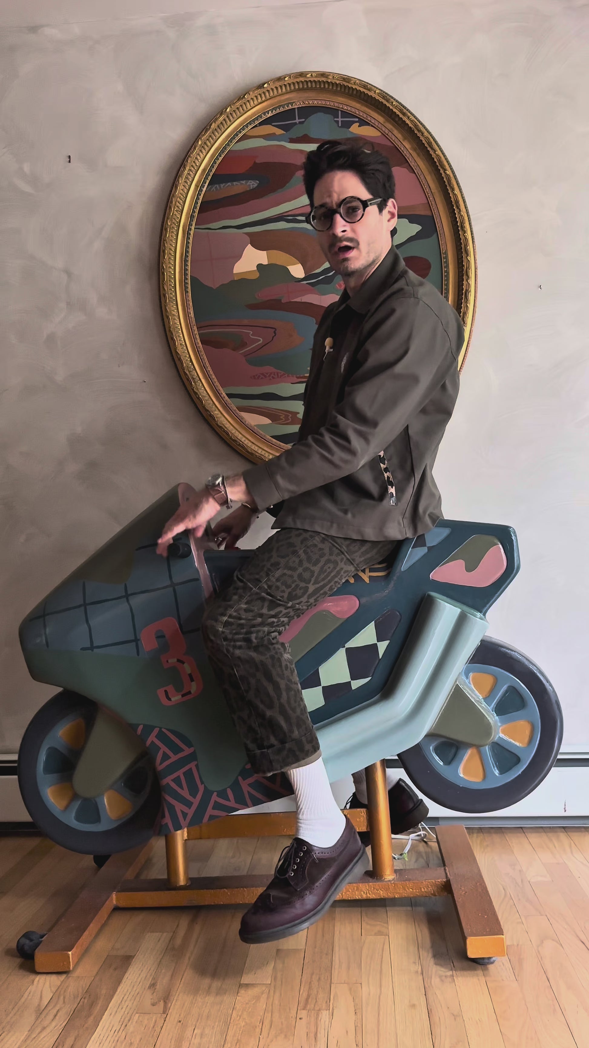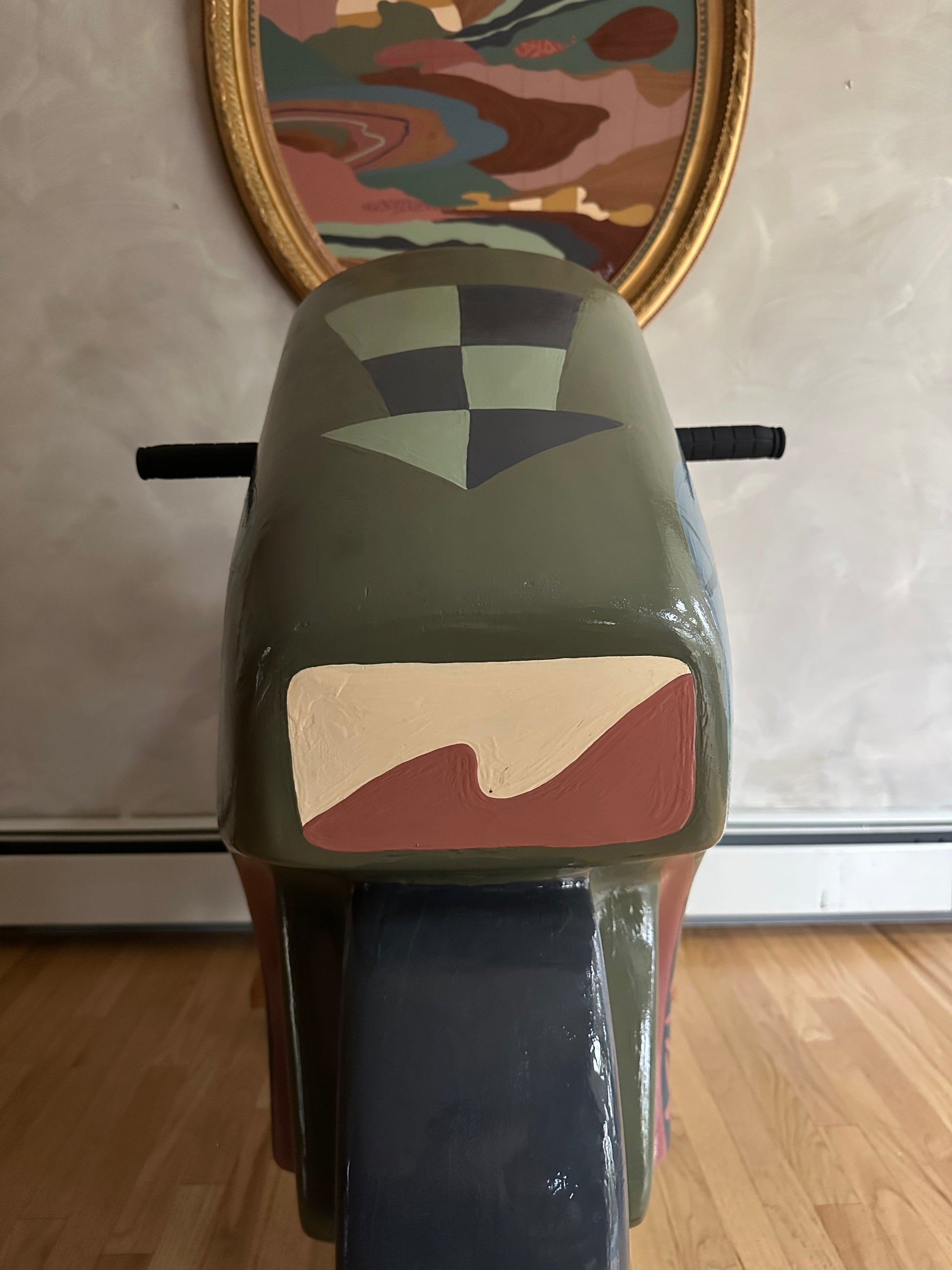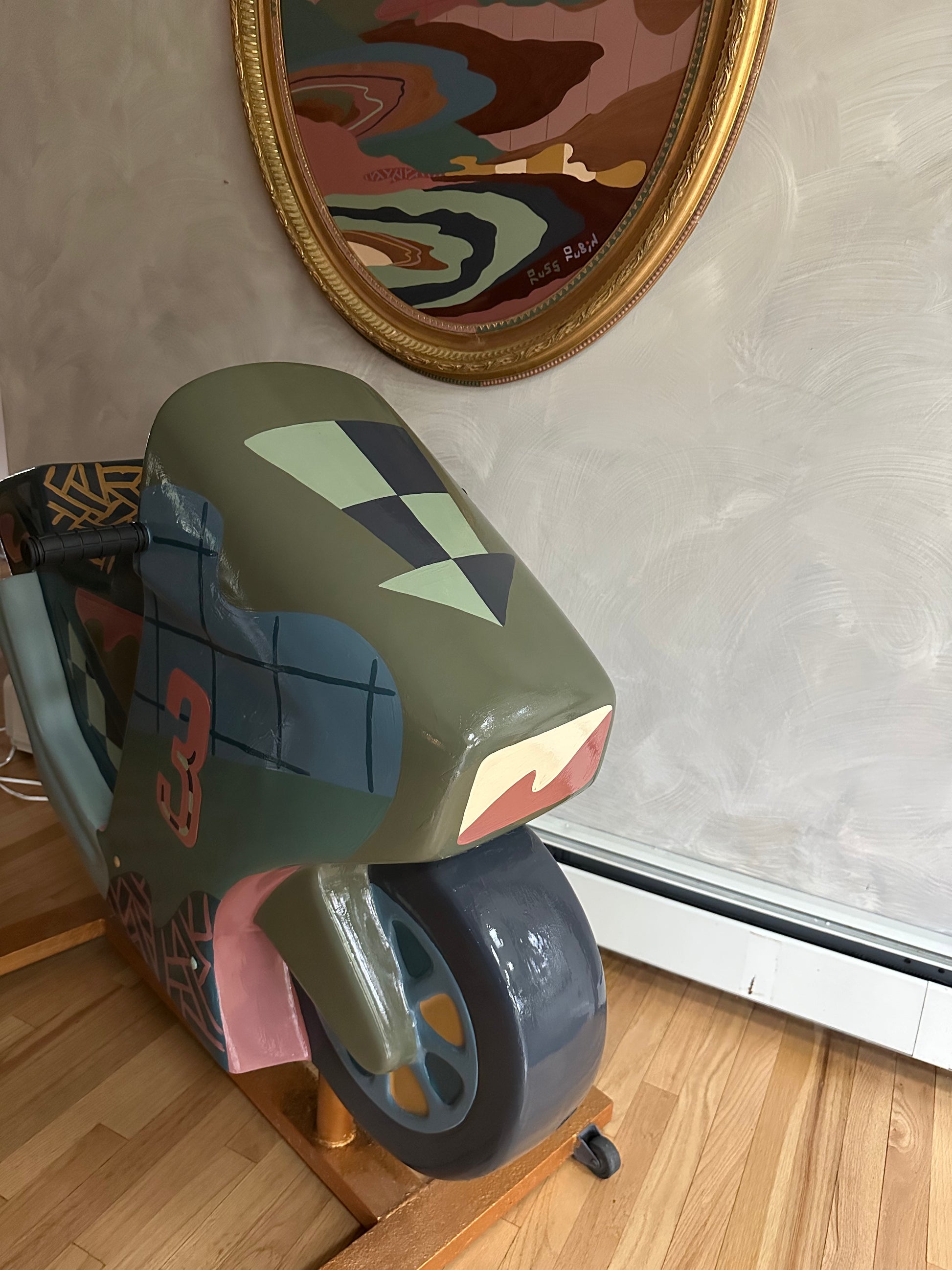 acrylic + house paint on working vintage motorcycle kiddie ride