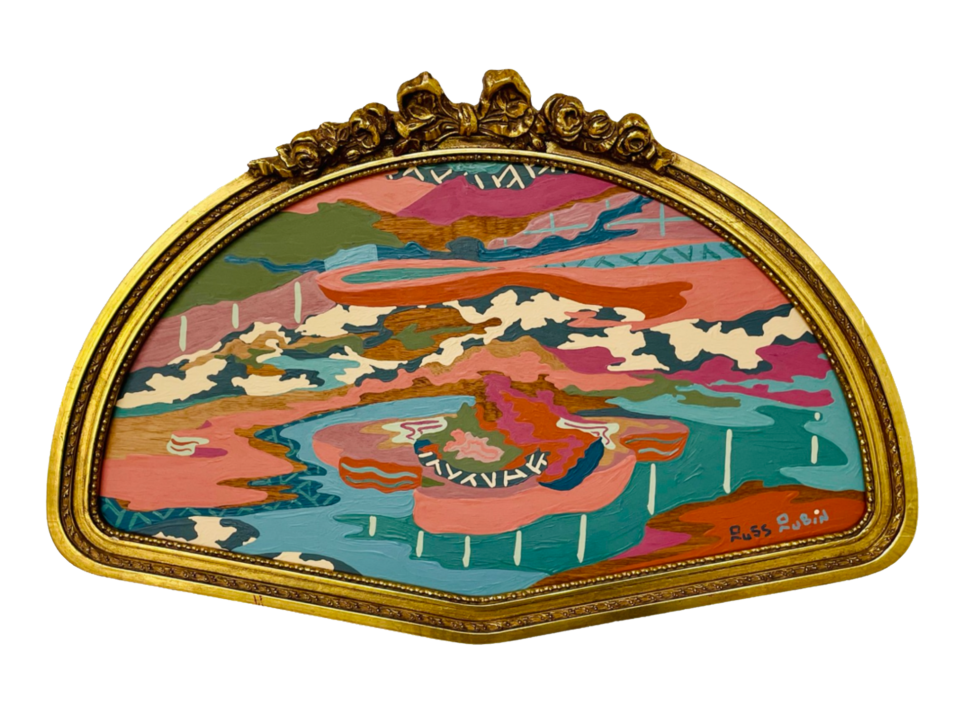 acrylic, house paint and wood oil on wood in vintage frame