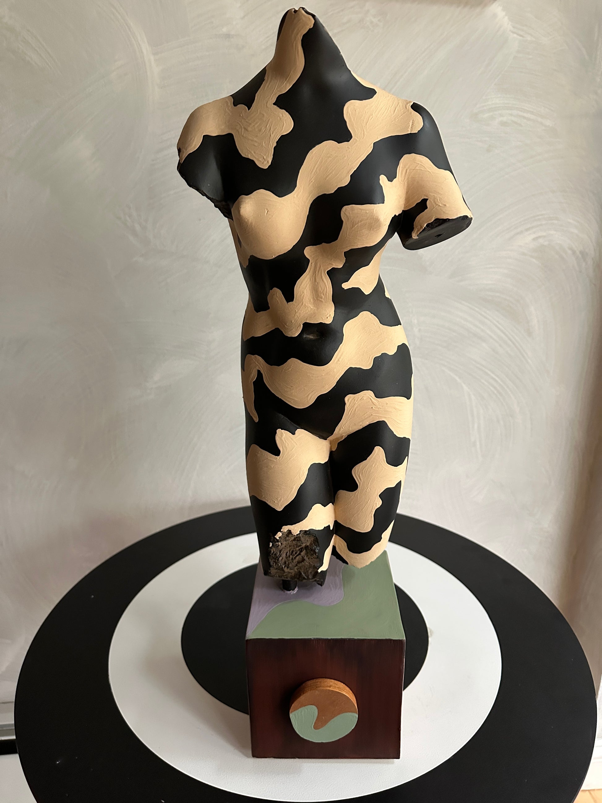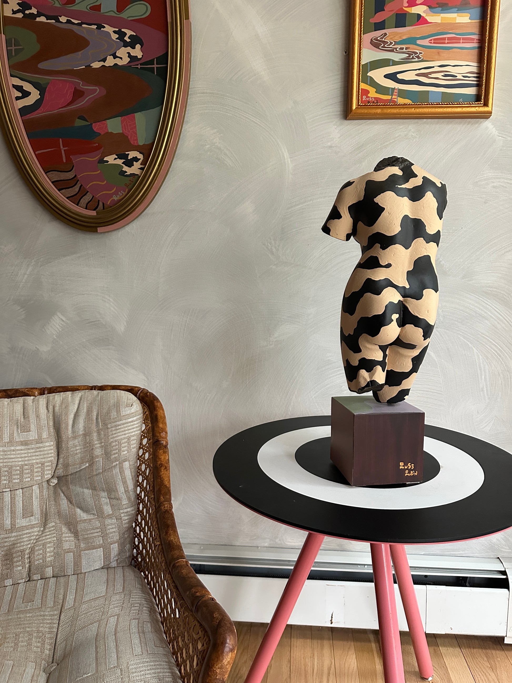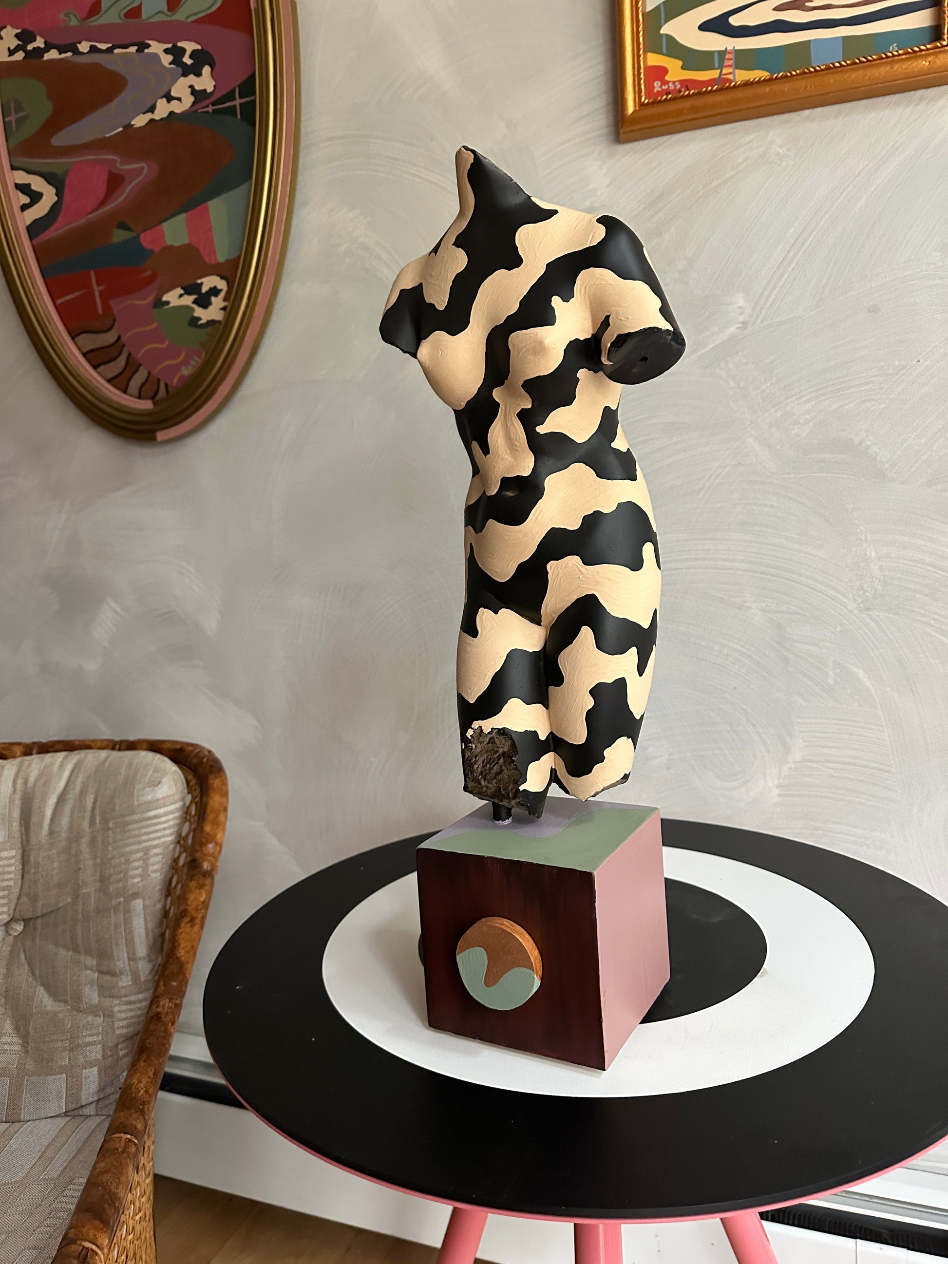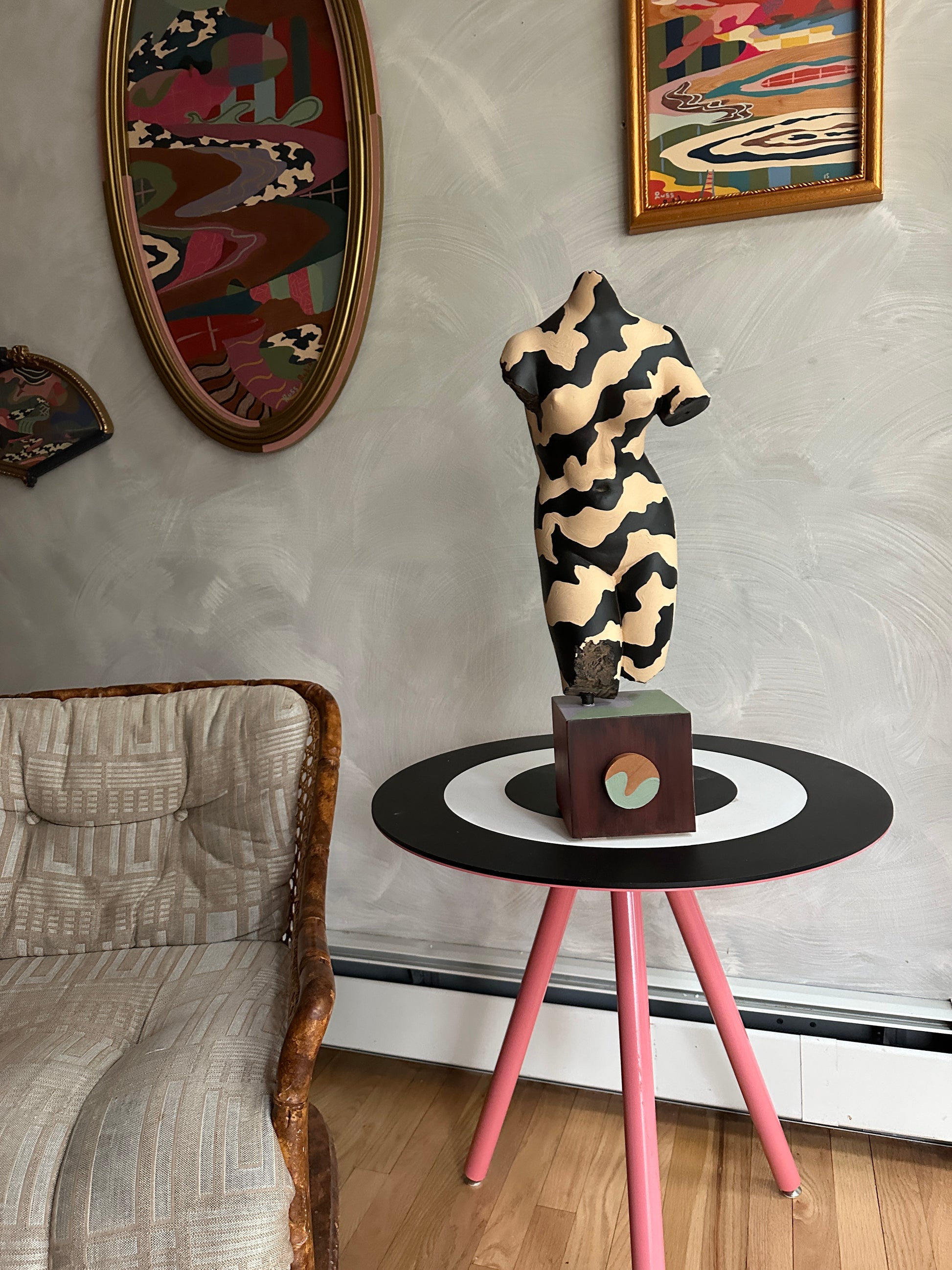 acrylic and house paint on wood and found sculpture