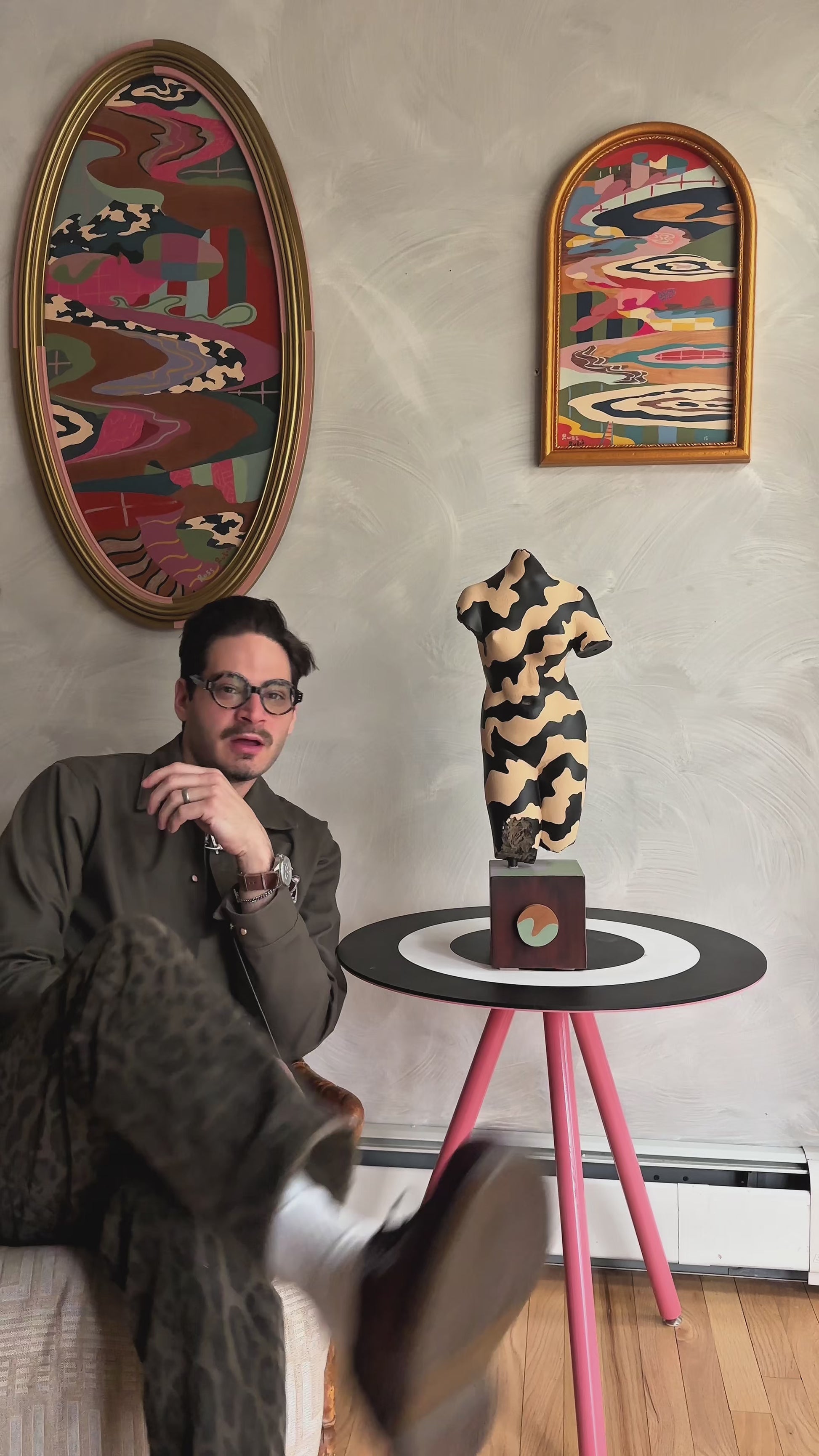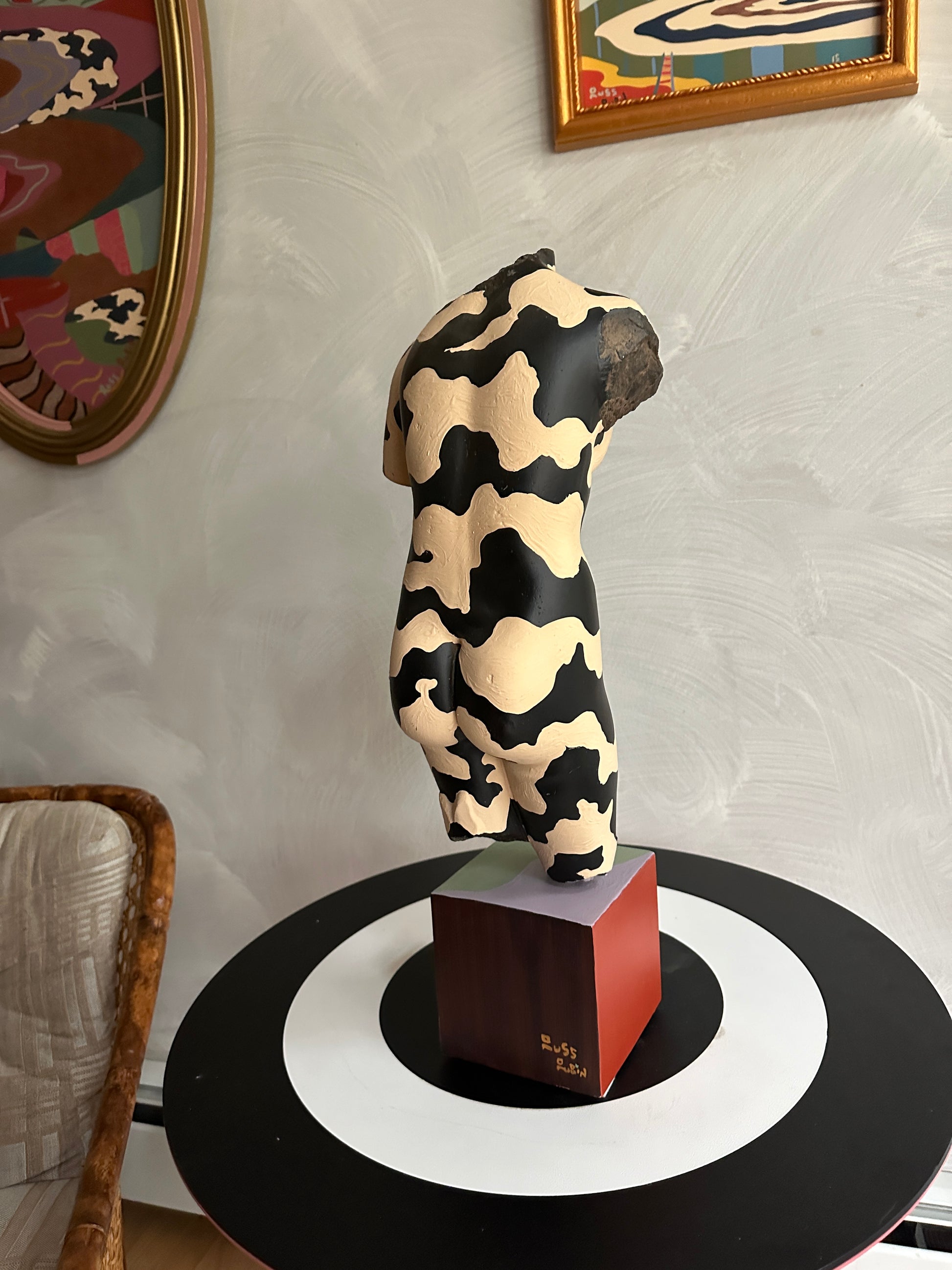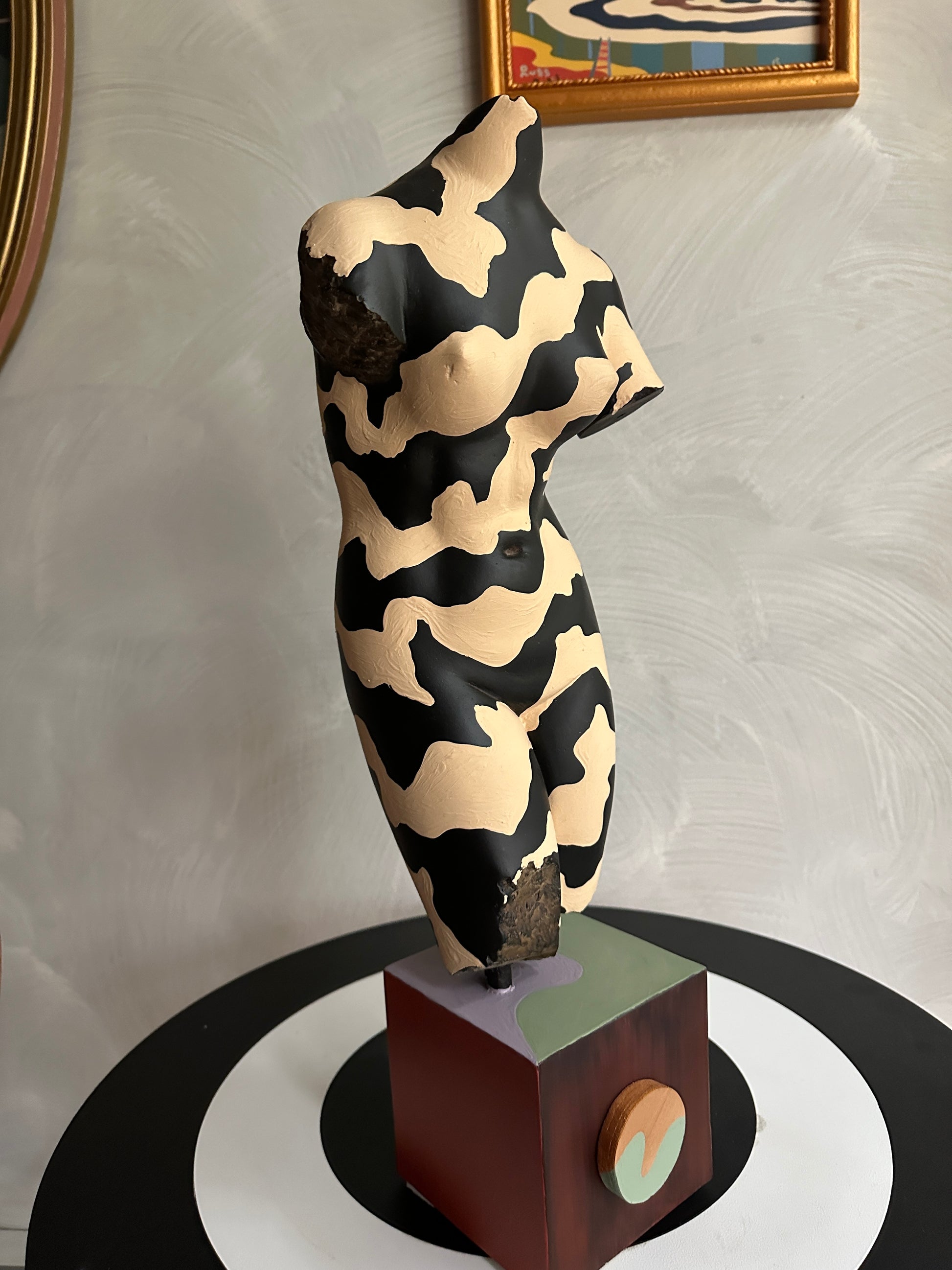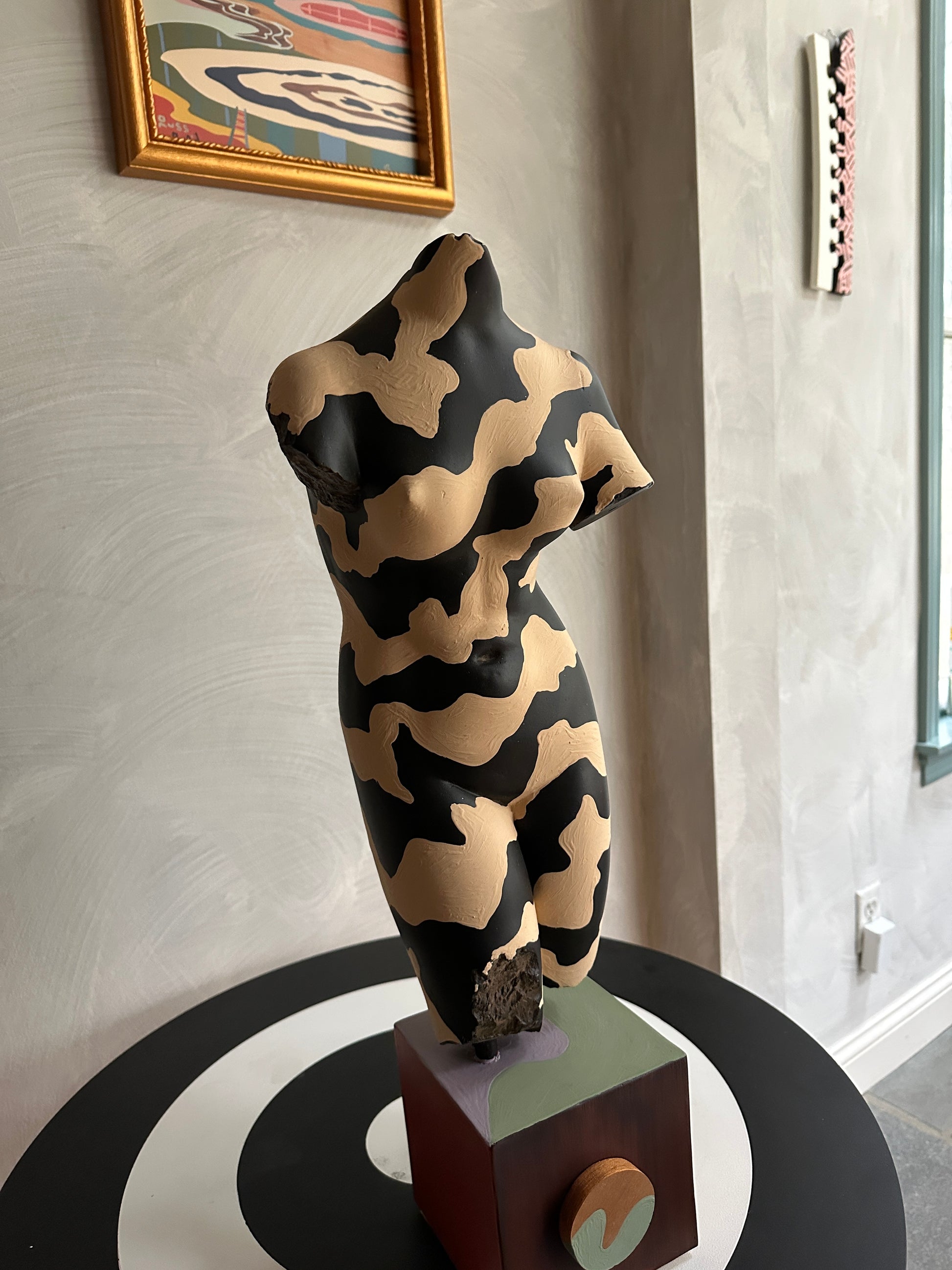 acrylic and house paint on wood and found sculpture